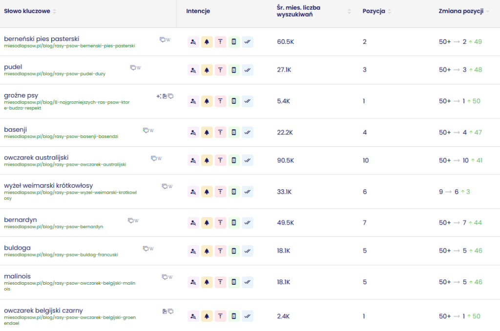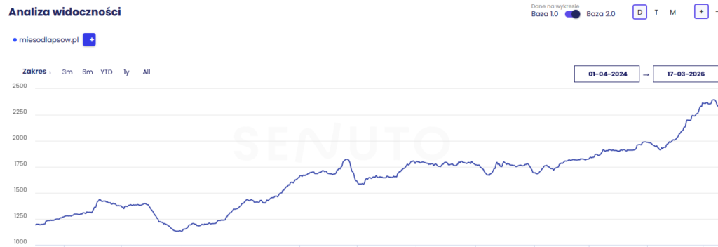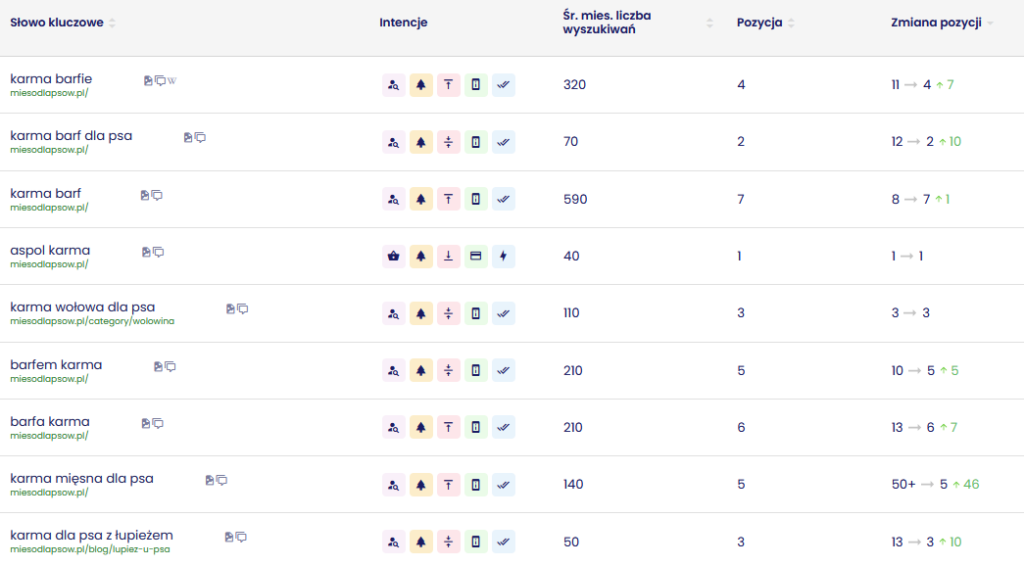 miesodlapsow.pl to sklep internetowy specjalizujący się w sprzedaży karmy dla psów, w tym diet BARF. Branża charakteryzuje się dużą konkurencją oraz silnym uzależnieniem od widoczności w Google – zarówno w obszarze zapytań produktowych, jak i edukacyjnych.
