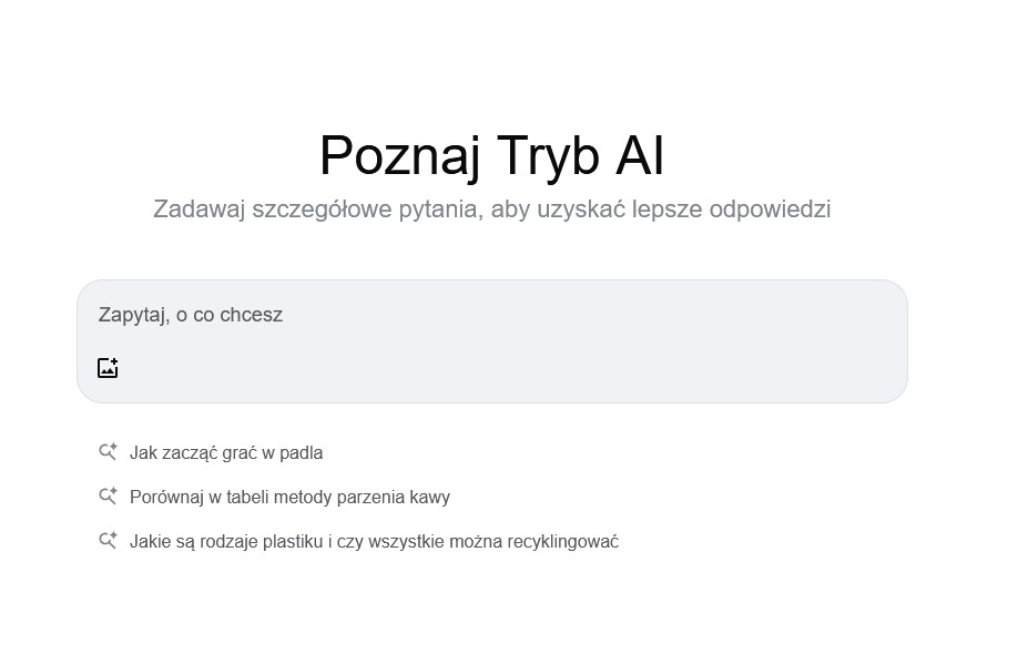 W październiku 2025 roku Google uruchomił w Polsce Tryb AI (AI Mode) — nowy sposób wyszukiwania opartą na modelu Gemini 2.5. Tryb AI nie zastępuje klasycznych wyników – stanowi alternatywną kartę obok zakładki „Wszystko”, do której można przełączyć się jednym kliknięciem. W tym środowisku sztuczna inteligencja nie tylko wyszukuje, ale też syntetyzuje wiedzę, tworząc zwięzłe, kontekstowe podsumowania z odnośnikami do źródeł.
