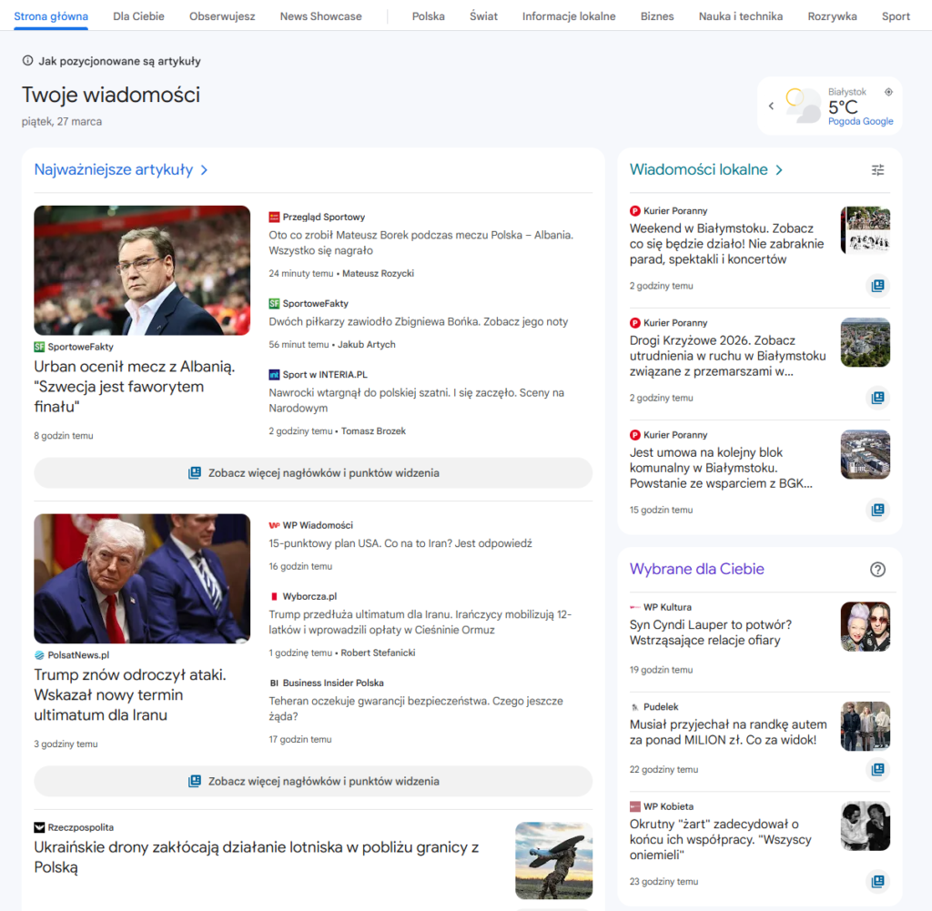 W Google News liczy się nie tylko to, o czym piszesz, ale także sposób, w jaki odpowiadasz na potrzeby odbiorcy. Artykuł powinien trafiać w aktualne zainteresowanie społeczne. Jeśli temat jest szeroko omawiany, a Twój tekst nie wnosi nic nowego, jego widoczność będzie ograniczona.