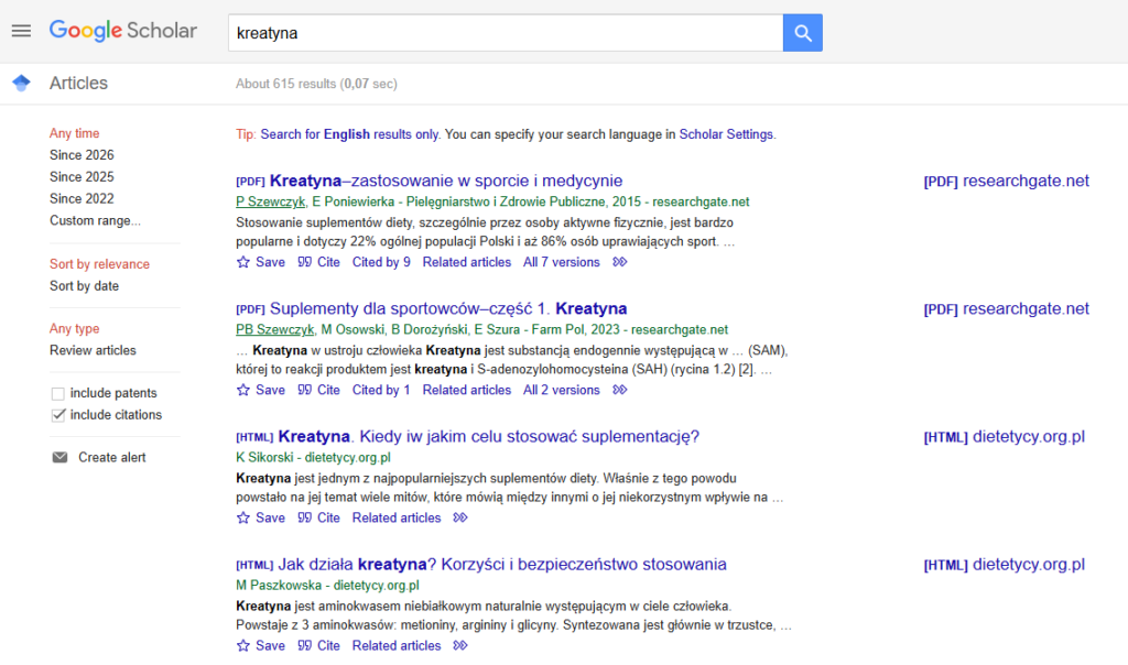 Google Scholar – przykładowe medium wiedzy z badaniami. Źródło: scholar.google.com