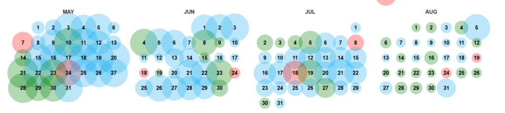 Gęsto rozmieszczone zapisy oznaczają dużą aktywność strony lub jej popularność. Czasami dotyczy to portali informacyjnych lub sklepów.