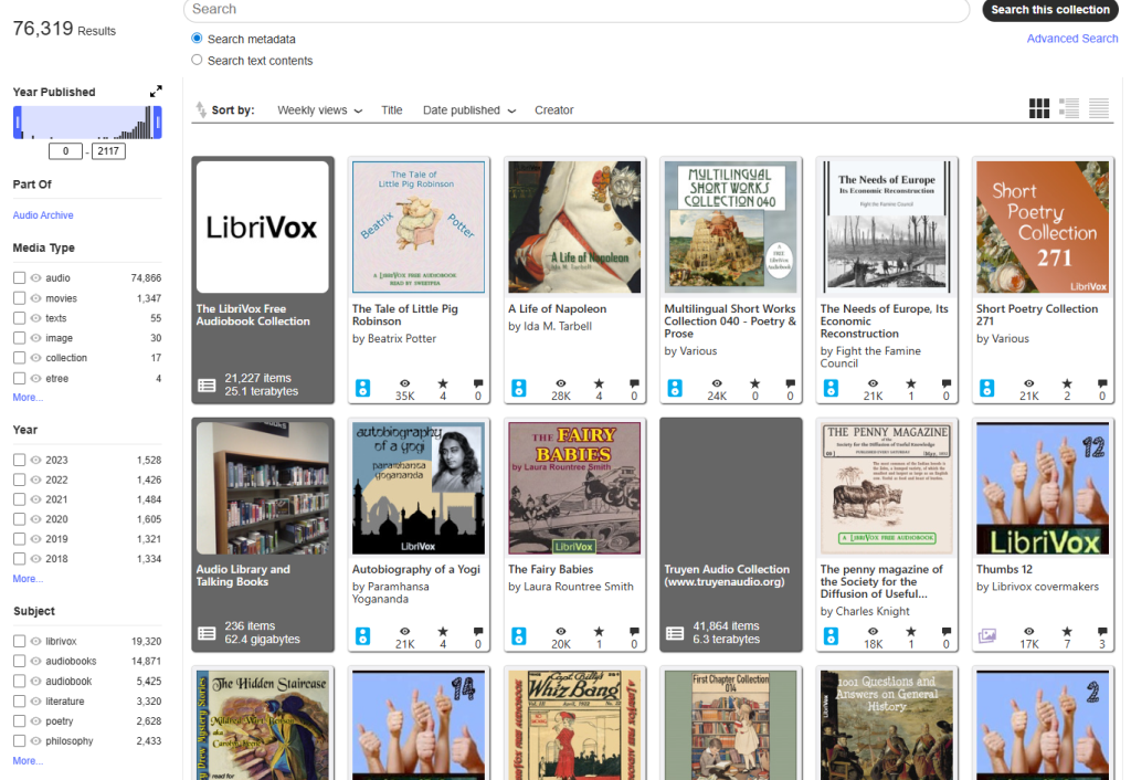 Zarchiwizowane audiobooki w Internet Archive. Źródło: archive.org/details/audio_bookspoetry
