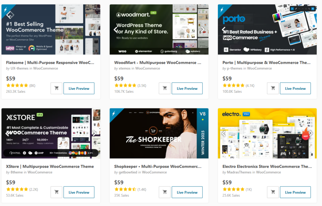 Przykłady gotowych szablonów dla Woocommerce dostępnych na themeforest.net