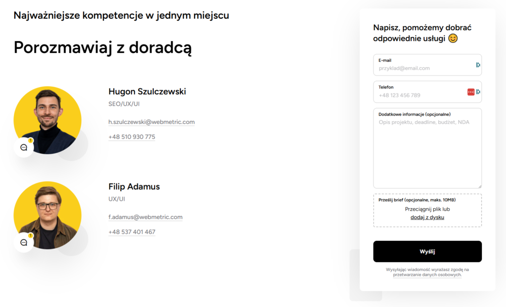 Niezbędne dane kontaktowe do ekspertów Webmetric.