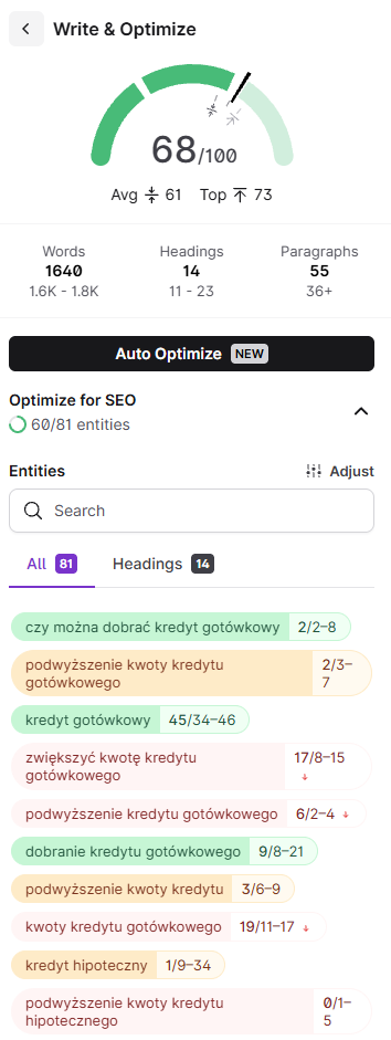 Optymalizacja semantyczna treści za pomocą Surfer SEO.