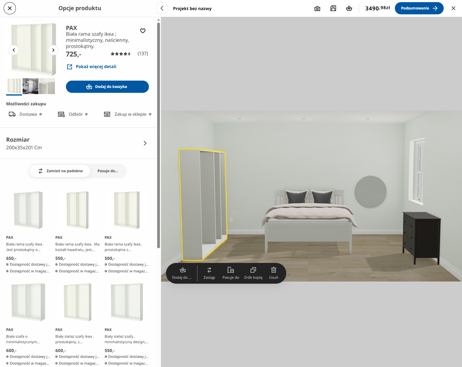 - dynamiczna kalkulacja ceny – każda decyzja od razu aktualizuje koszt zakupu;