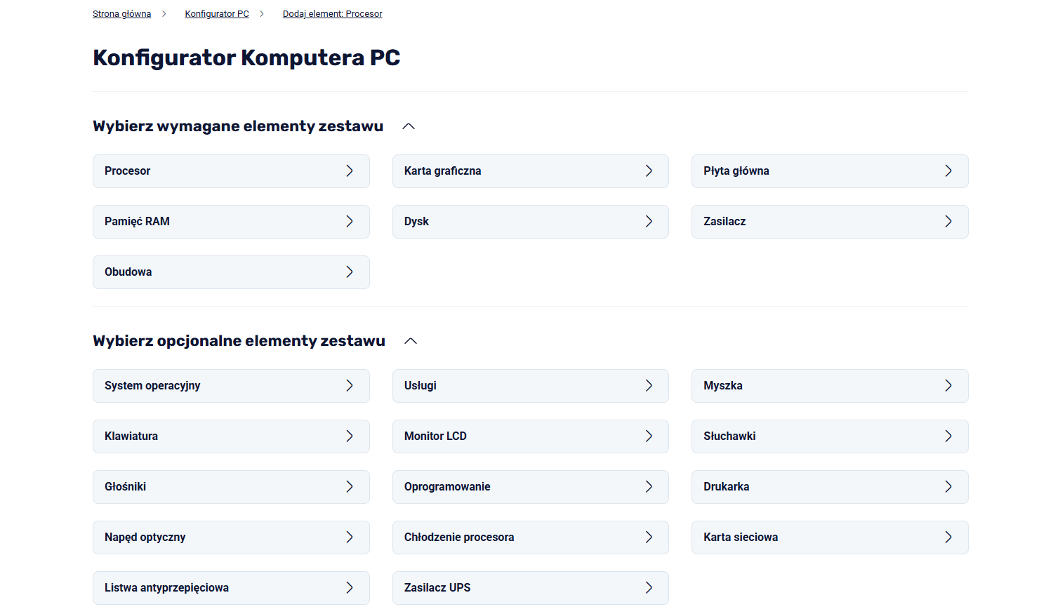 - podsumowanie konfiguracji – pełen zestaw wyborów wraz z końcową ceną;