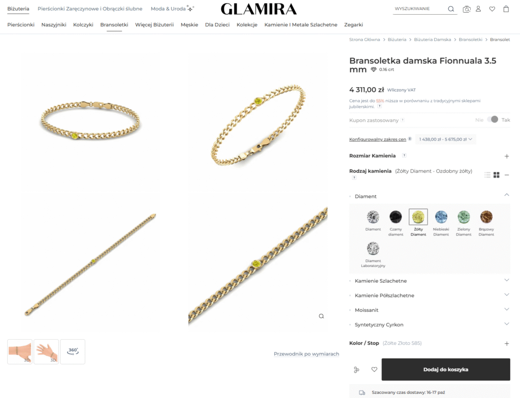 Biżuteria na zamówienie wymaga indywidualizacji. Konfiguratory pozwalają dobrać kamienie, rodzaj kruszcu, grawer. To sektor, w którym personalizacja ma wyjątkowe znaczenie emocjonalne.