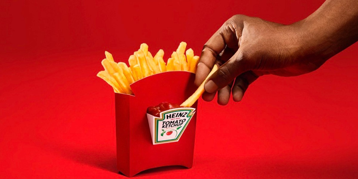 Heinz po 75 latach zmienił projekt kartonika na frytki. Nowe opakowanie posiada specjalną, zintegrowaną „kieszonkę” na keczup. Rozwiązało to odwieczny problem fanów fast foodów. Kampania oparta na rozwiązaniu realnego problemu (tzw. utility marketing). Stała się viralem na TikToku, gdzie użytkownicy testowali „wydajność” nowej konstrukcji.